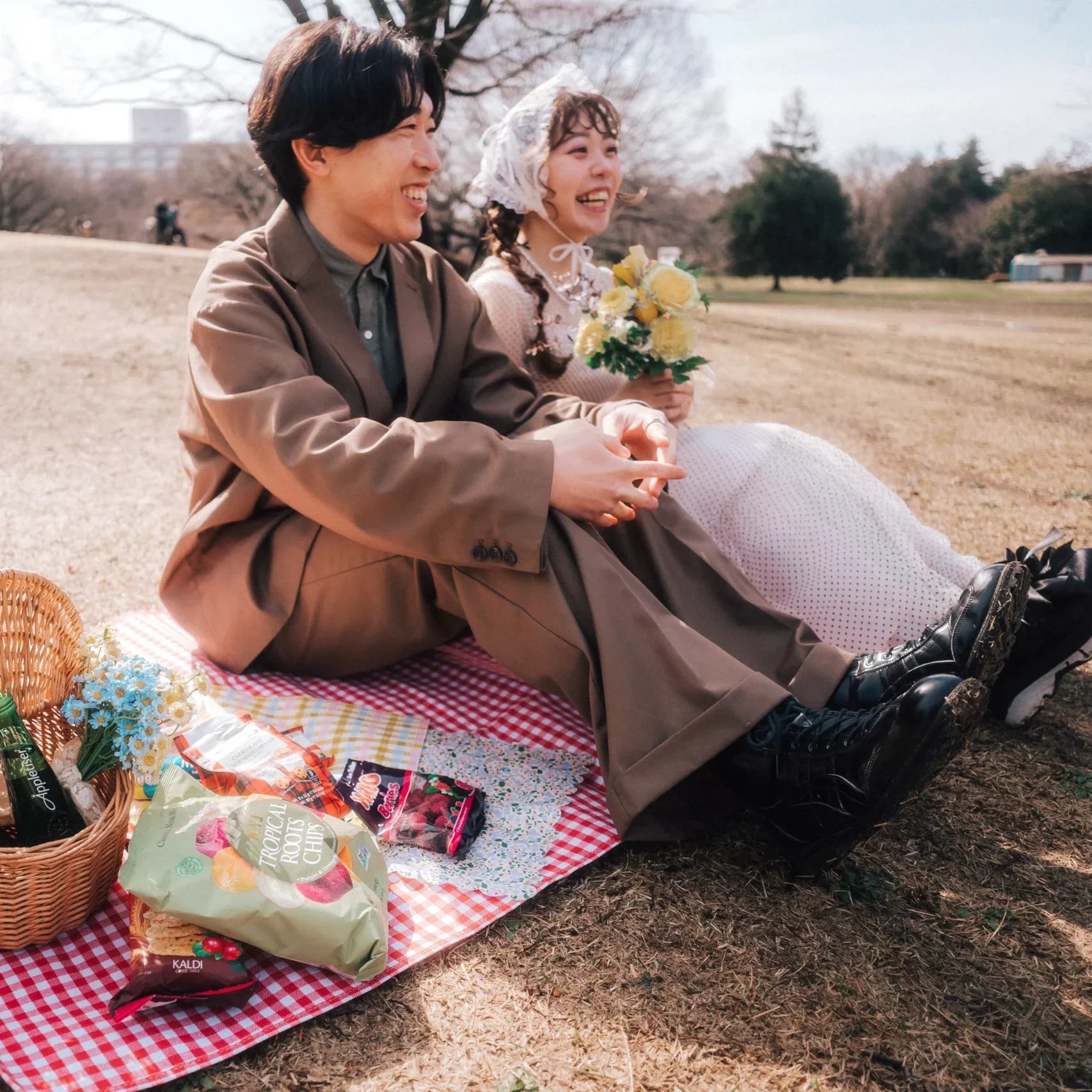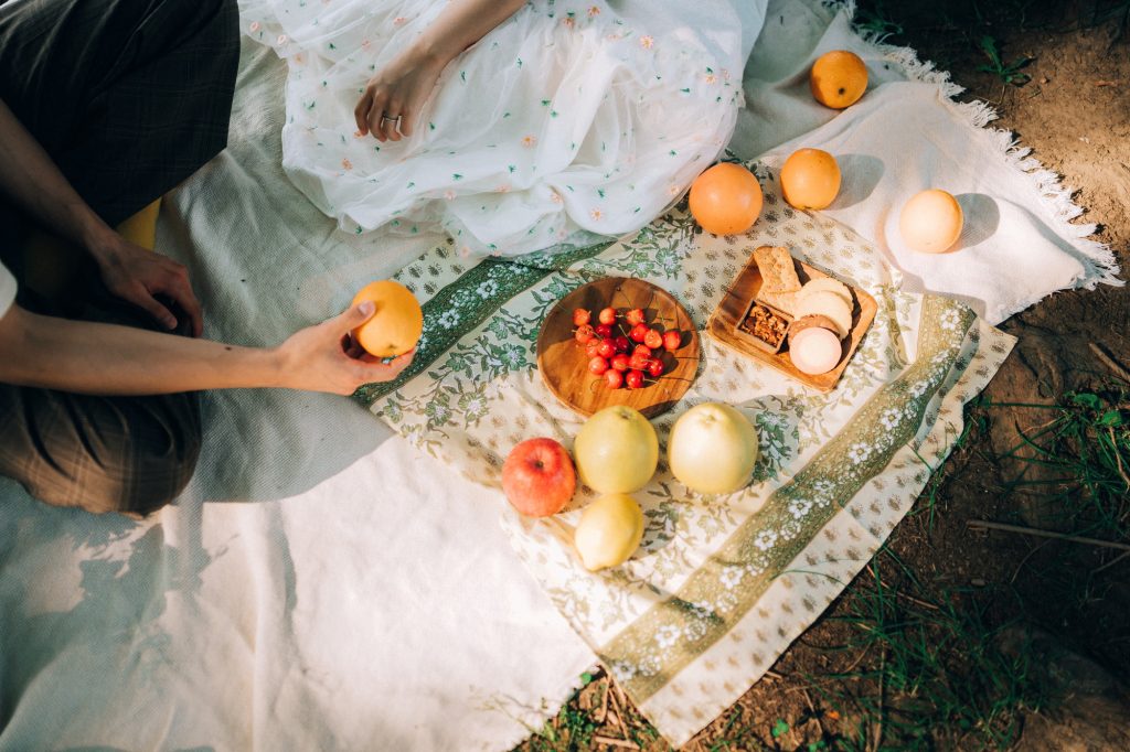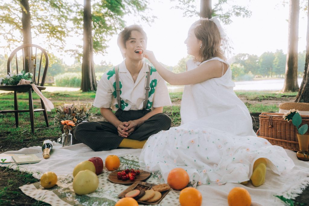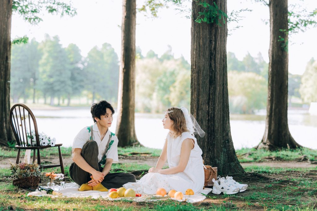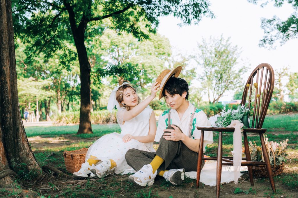 撮影用に下記のようなピクニックアイテムを一式こちらで用意いたします ・ピクニックシート ・バスケット ・アンティークチェア ・麦わら帽子 ・装花 ・イミテーションフルーツ